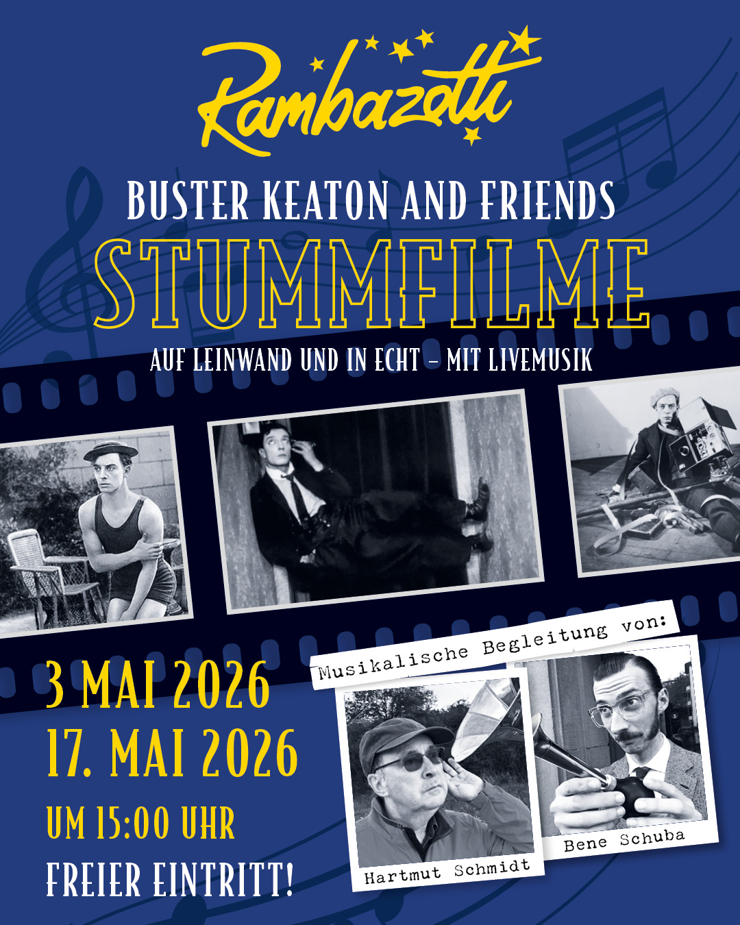 Gemeinsam sehen wir auf der großen Leinwand die großen Clowns von Hollywood und begeben uns auf die Spuren von Charlie Chaplin, Buster Keaton und den großen Filmemacher:innen der Stummfilmzeit wie Mary Pickford und den Talmagde Schwestern.