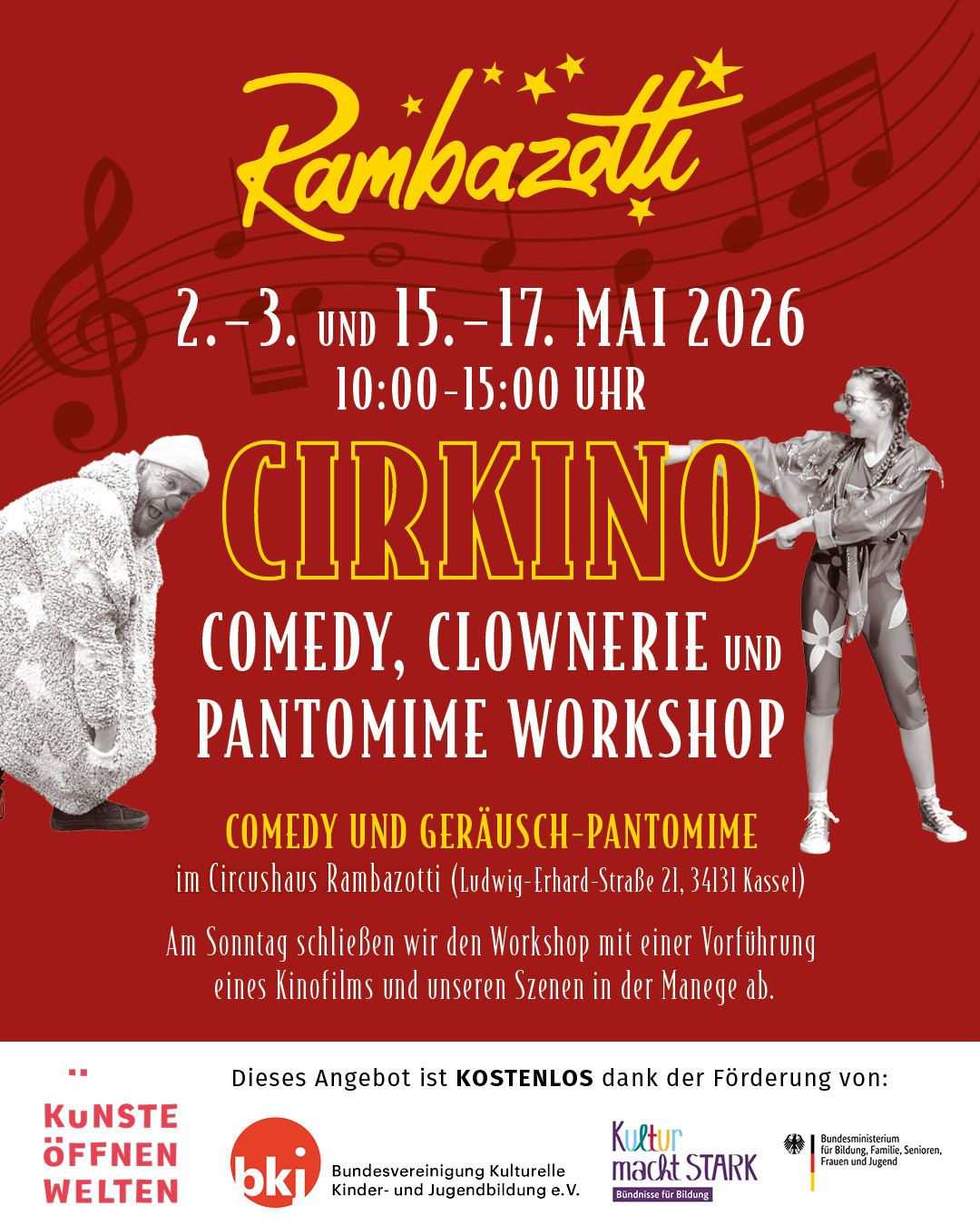 mit Livemusik von Hartmut Schmidt und Bene Schuba und Abschlussshows der Cirkino Workshops
